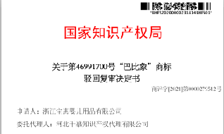 热烈祝贺第46991700号" 巴比象”商标驳回复审案成功