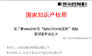 热烈祝贺第48462743号" KINGTONE”商标驳回复审案成功