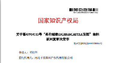 热烈祝贺第47914110号" 英伦城堡LECEE CASTLE及图”商标驳回复审案成功