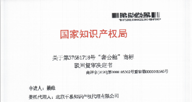 热烈祝贺第37681718号" 奢公关”商标驳回复审案成功
