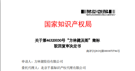 热烈祝贺第46320030号" 方林健及图”商标驳回复审案成功