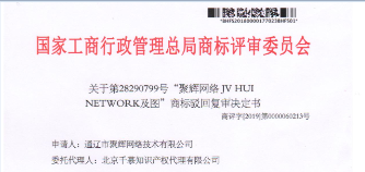 热烈祝贺第28290799号" 聚辉网络JV HUI NETWORK 及图”商标驳回复审案成功