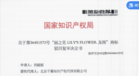 热烈庆祝第36451573号“丽之花 LILY'S FLOWER及图”商标驳回复审成功