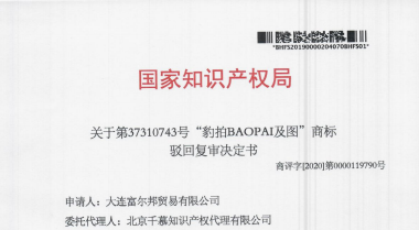 热烈庆祝第37310743号“豹拍BAOPAI及图”商标驳回复审成功