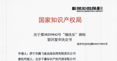 热烈庆祝第38259842号“瑞佳乐”商标驳回复审成功