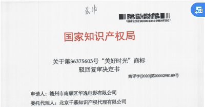 热烈庆祝第36375603号“美好时光”商标驳回复审成功