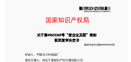 该厂所设计的“麦当宝及图”商标别具心裁,匠心独运,展现了高度的企业文化特色与品牌区分度,寓意深刻,内涵丰富。但是其申请商标因《商标法》第30条近似问题被商标局驳回