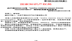 热烈庆祝第58935102号“CCFM CHING CHAN FOOD MACHINERY”商标驳回复审成功
